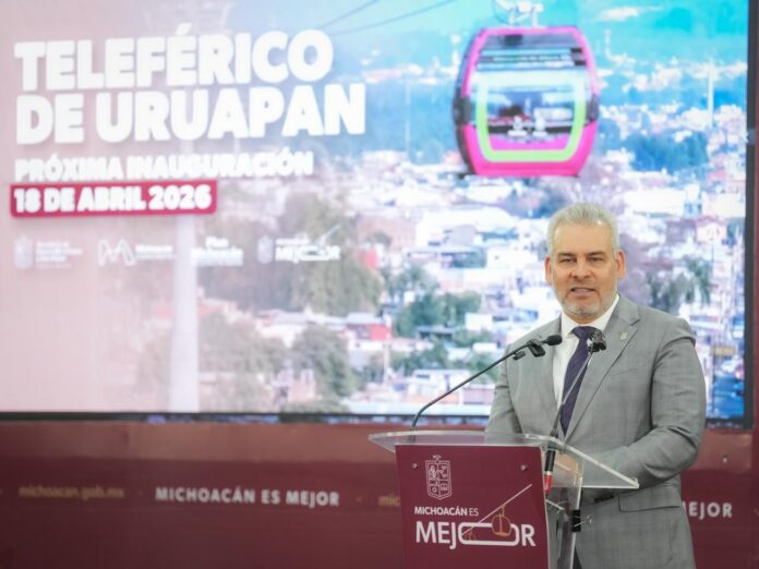 Morelia, Michoacán, 2 de marzo de 2026.- El próximo 18 de abril será inaugurado el teleférico de Uruapan, una obra en la que el Gobierno estatal invierte 3 mil 200 millones de pesos sin generar deuda pública y que beneficiará a más de 118 mil habitantes, así lo señaló el gobernador Alfredo Ramírez Bedolla.