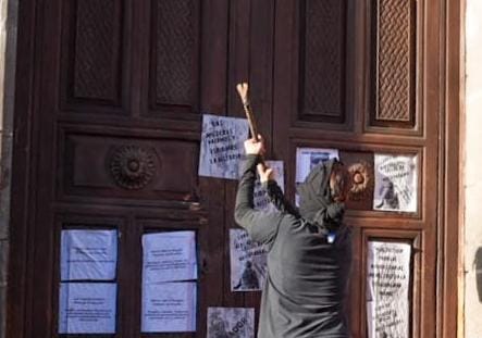 Durante los primeros momentos de la movilización, algunas manifestantes —varias de ellas encapuchadas y vestidas de negro— realizaron destrozos en los ventanales de la Secretaría de Turismo, los cuales fueron quebrados con un objeto contundente, además de realizar pintas en los muros de cantera con la consigna “8M”.