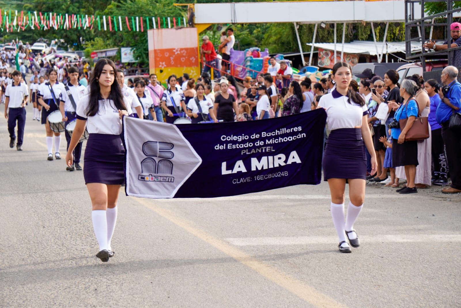 Las preparatorias también se hicieron presente en este tradicional desfile; quienes con escoltas y bandas de guerra honraron la memoria del General Morelos; entre las que se encuentra Cecyte 40 de La Mira; Cecyte 40 extensión Chucutitan; Cobaem La Mira; Cetmar 16, Telebachillerato 205 de El Habillal y Cecyte 05 de Las Guacamayas.