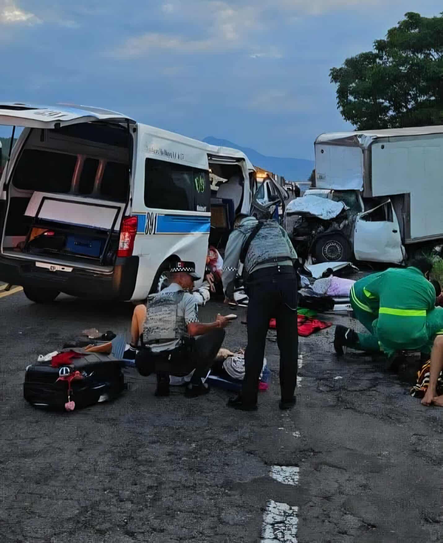 Gabriel Zamora, Mich.- 16 de agosto de 2025.- La mañana de este sábado se registró un brutal choque de frente entre una combi del Servicio Público y una camioneta de carga, en la autopista Siglo XXi, con saldo preliminar de 4 personas sin vida y al menos 5 lesionadas, de acuerdo con fuentes de rescate.