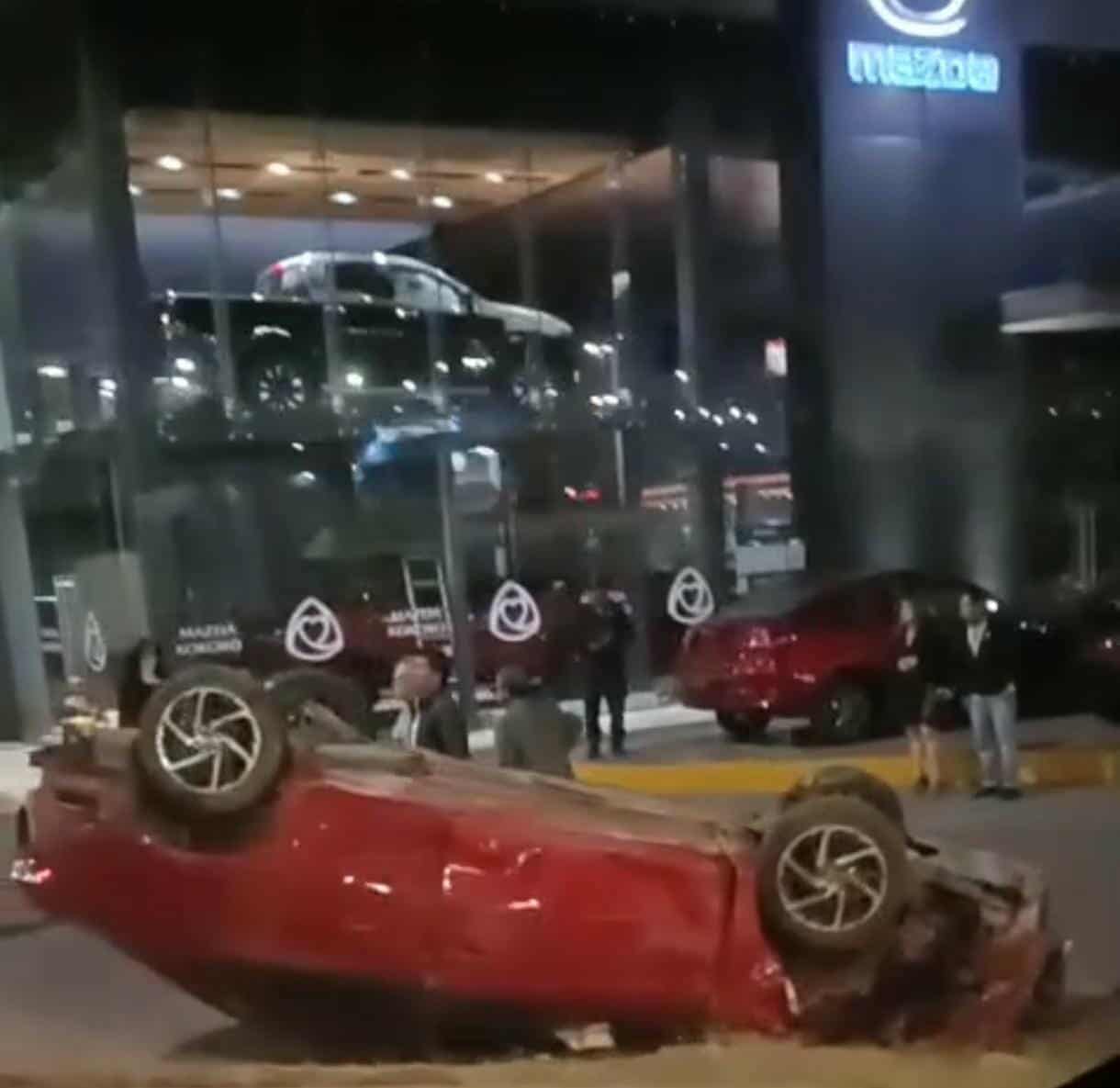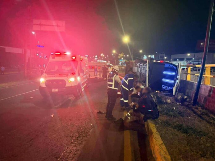 Posteriormente, en el Libramiento Suroriente, a la altura de la colonia Pascual Ortiz Ayala, cerca del Distribuidor Vial Salida a Mil Cumbres, un auto y una combi de la Ruta Gris Circuito protagonizaron un choque y ambas unidades terminaron volcadas.