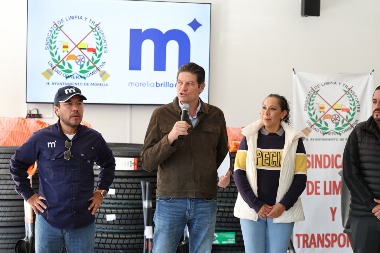 Morelia, Michoacán; 1 de diciembre de 2026.- En una clara muestra de respaldo al esfuerzo que diariamente realizan las y los integrantes del Sindicato de Limpia y Transportes de Morelia, el Presidente Municipal, Alfonso Martínez Alcázar, entregó herramientas y neumáticos para las unidades en donde las y los empleados municipales salen a las calles a mantener limpia la ciudad.