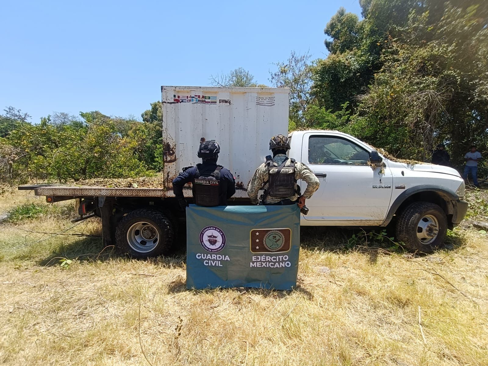 Con el apoyo del equipo antibombas del Ejército Mexicano y el Agrupamiento Especializado en Artefactos Explosivos y Materiales Peligrosos de la Guardia Civil se realizó el hallazgo de los artefactos de fabricación casera sobre un camino de terracería. En la zona, también aseguraron una camioneta de la marca Dodge, línea RAM que cuenta con reporte de robo.