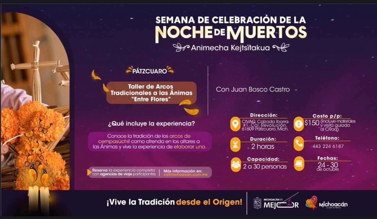 El cupo de cada grupo es de hasta 30 personas, por ello la Sectur Michoacán te invita a sumarte a una experiencia llena de color, tradición y esencia michoacana. Para inscribirte y mayores detalles la Sectur pone a disposición el teléfono 443 224 6187, o bien, a través del sitio web https://visitmichoacan.com.mx/