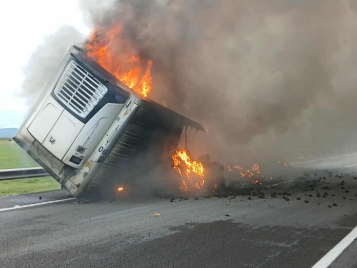 CuitzeoMich.- Domingo 22 de junio de 2025. – La tarde de este domingo el remolque de un tractocamión ardió en llamas sobre la autopista Morelia-Salamanca, incidente que únicamente dejó daños materiales, informaron fuentes de rescate.