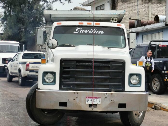Se trata de un camión International tipo volteo, color blanco, con placa NB8626A. Seguridad Pública Municipal indicó que los oficiales resguardaron el inmueble donde fue encontrada la unidad y dieron parte a la Fiscalía General del Estado (FGE), cuyos agentes tramitaron una orden de cateo y al obtenerla la cumplimentaron.