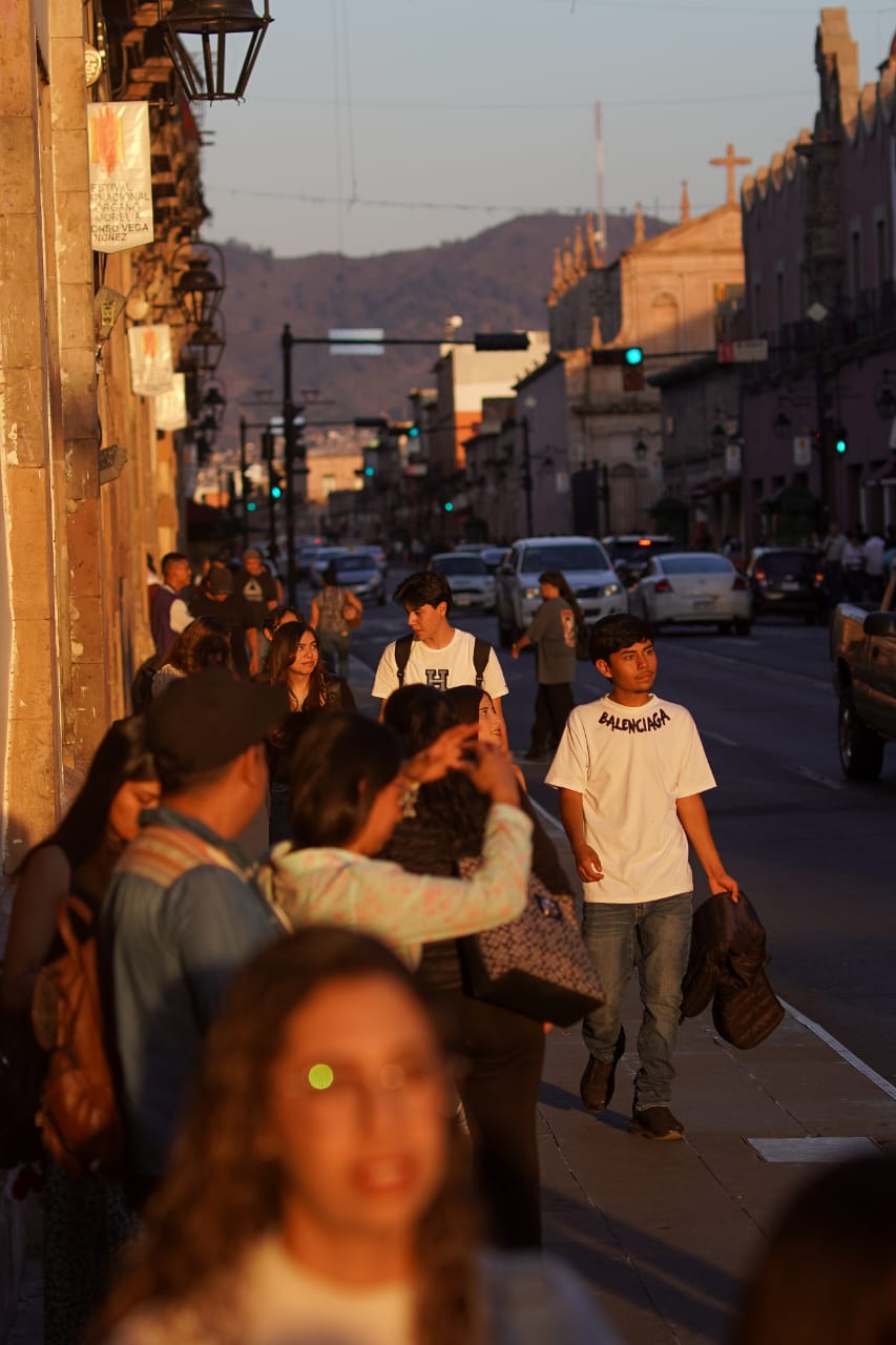 Morelia, Mich., a Domingo 1 de Marzo del 2026 | Agencia ACG.- El atardecer de este domingo regaló una escena tranquila y cálida en el Centro Histórico de Morelia, donde la luz dorada comenzó a cubrir las canteras rosadas mientras familias, parejas y visitantes aprovecharon las últimas horas del día para caminar y descansar en las plazas.