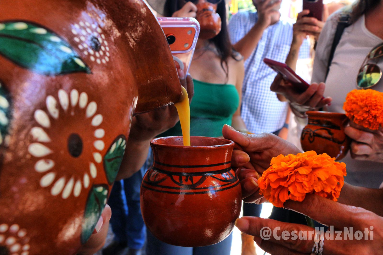 Vista este Pueblo Mágico, en donde ya venden esta delicia elaborada con agua, masa de maíz, canela, piloncillo y el ingrediente principal, los pétalos de la flor de cempasúchil.