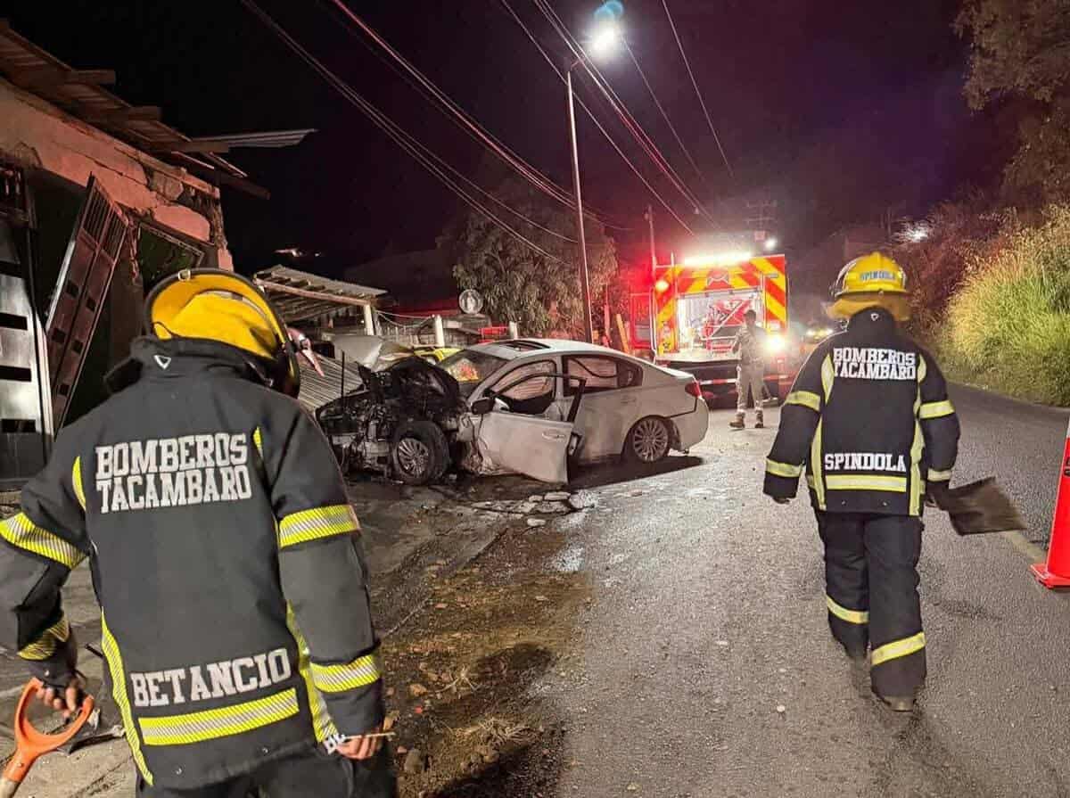 Tacámbaro, Mich.- Domingo 14 de diciembre de 2025.- Dos adolescentes resultaron lesionados tras el choque del automóvil en el que viajaban contra la fachada de um inmueble ubicado en la cabecera municipal de Tacámbaro, informaron fuentes policiales y de rescate.