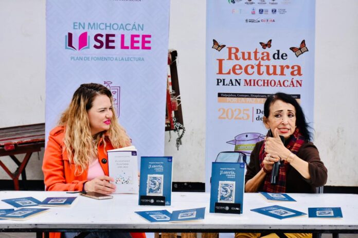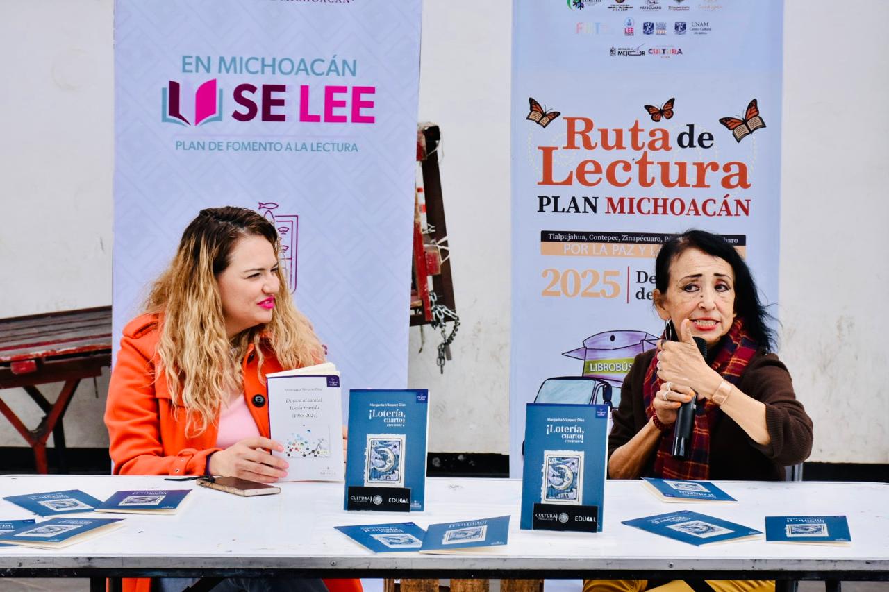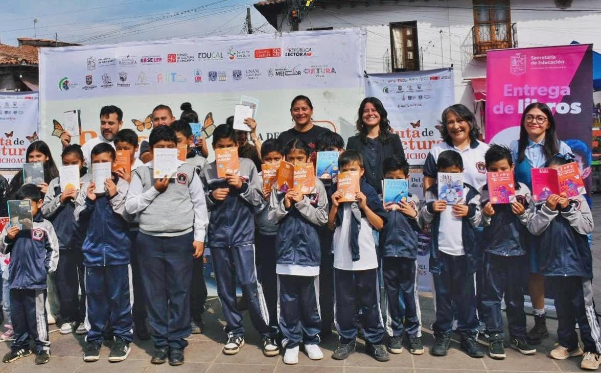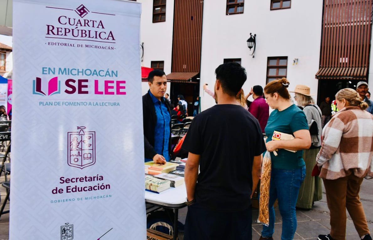 Pátzcuaro, Michoacán,13 de diciembre de 2025.- Para garantizar el derecho de la población michoacana a la lectura, y como parte de las acciones del Plan Michoacán por la Paz y la Justicia, la editorial Cuarta República distribuye sin costo ejemplares de su catálogo. Esta acción se enmarca en la Ruta de la Lectura, que llega a Pátzcuaro este sábado y domingo con el impulso de la secretaria de Educación, Gabriela Molina.