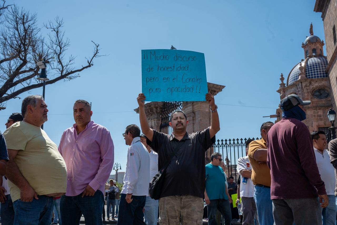 En el caso del Conalep, la movilización fue encabezada por integrantes del Sindicato Nacional de Docentes y Trabajadores del Conalep (SINADOCO), así como por la Unión de Sindicatos y Organizaciones Sociales del Estado de Michoacán, que agrupa a distintos gremios en la entidad. Alfonso López Real, docente del plantel Lázaro Cárdenas e integrante del SINADOCO, denunció que fue cesado sin explicación formal.