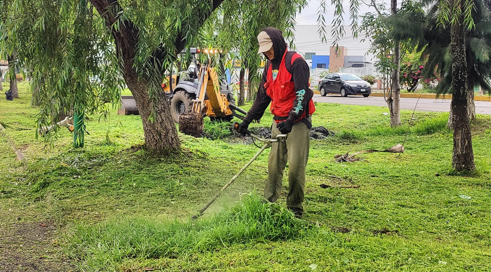 Podan pasto y limpian cunetas