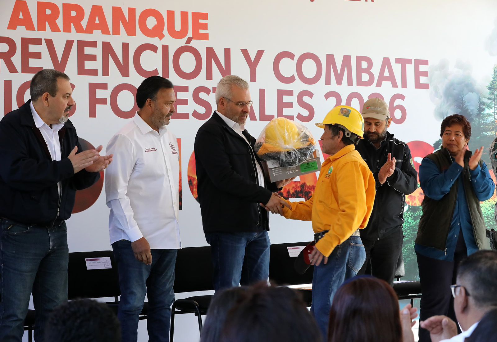 “La importancia del uso de helicópteros es para fortalecer el respaldo a nuestros brigadistas, para que tengan seguridad en el terreno, porque el respaldo aéreo les da esa confianza de que no están solos para combatir el incendio forestal”, resaltó el mandatario estatal, tras realizar la entrega de equipamiento.