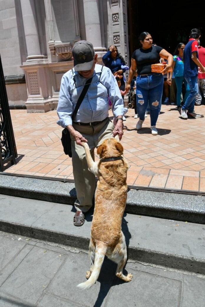 Sahuayo, Michoacán.- En Sahuayo, José Preciado recorre las calles acompañado de Candy, su perrita desde hace siete años. Con sólo decirle “Candy, ayúdame”, ella le ofrece sus patas y lo ayuda a subir o bajar las banquetas, compartiendo cada paso a su lado.
