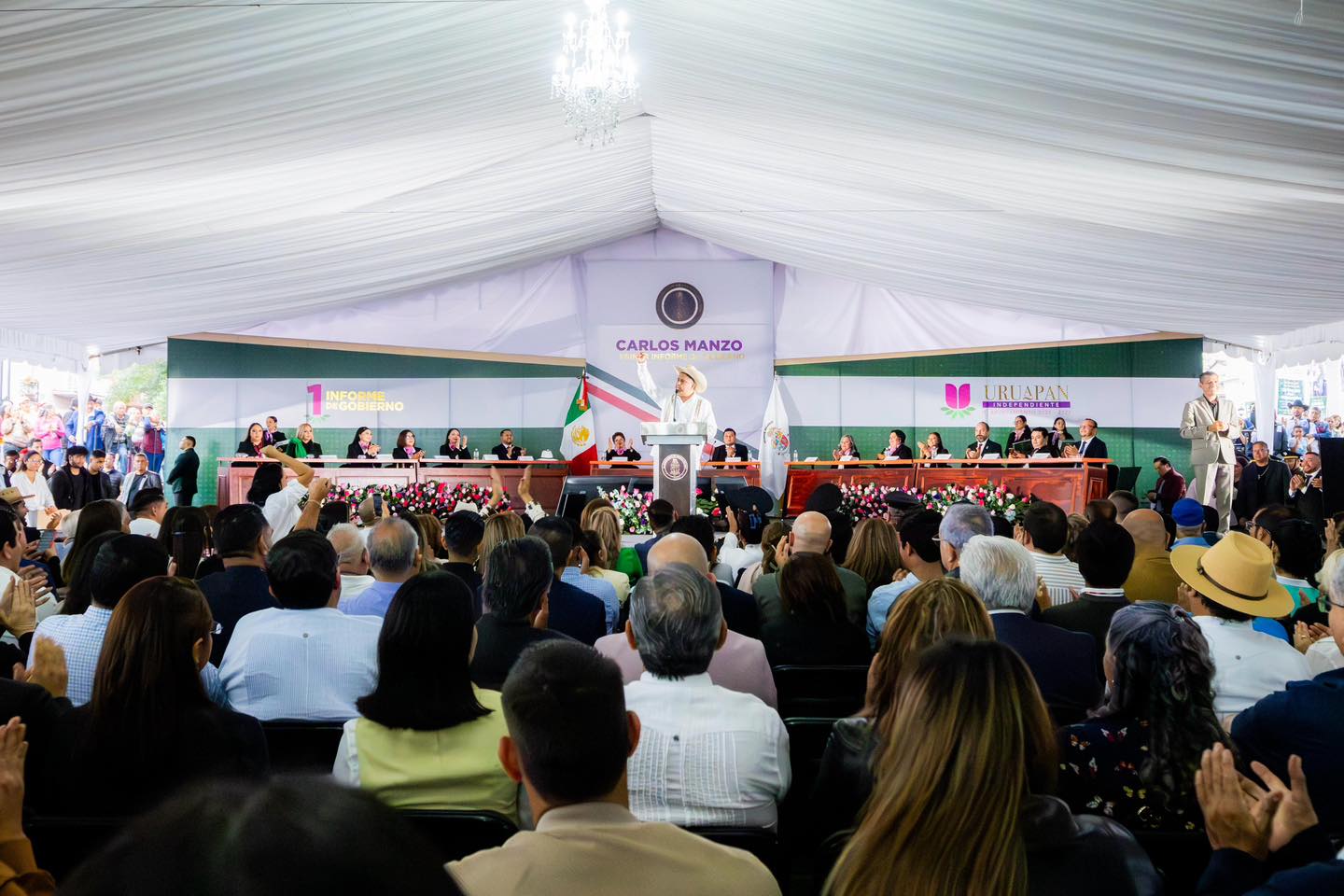 URUAPAN, Michoacán.— En un acto celebrado en la pérgola municipal, el presidente municipal Carlos Manzo Rodríguez presentó su primer informe de gobierno, marcando un año de gestión caracterizado por obras de infraestructura, programas sociales y una postura firme ante los retos de seguridad y gobernanza que enfrenta la ciudad.