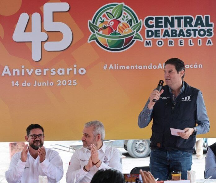 Morelia, Michoacán, a 14 de junio de 2025.- La Central de Abastos de Morelia, punto clave para el comercio en la capital michoacana, celebró su 45 aniversario con un evento en el que el Presidente Municipal de Morelia, Alfonso Martínez Alcázar, refrendó su compromiso con el desarrollo económico de esta zona importante para la capital.