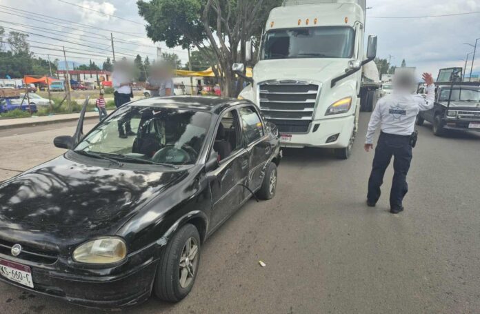 Morelia, Mich.- Miércoles 03 de septiembre de 2025.- Un automóvil y un tractocamión protagonizaron un aparatoso choque sobre la Avenida Morelos Norte de la ciudad de Morelia, hecho que únicamente dejó daños materiales, comentaron fuentes policiales.