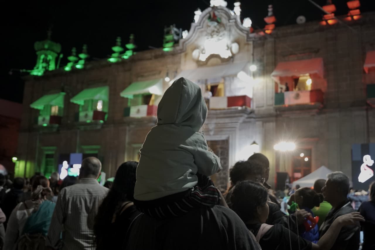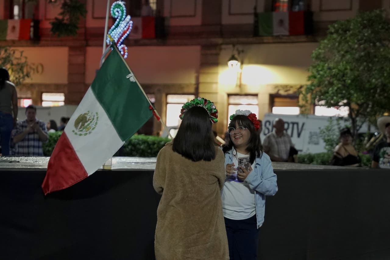 Morelia, Michoacán.- Durante celebración previa al grito de independencia por el gobernador Alfredo Ramírez Bedolla en palacio de gobierno, y el esperado concierto de Cristian Nodal, en el Centro histórico de la ciudad de la cantera llega el público para llenar de colores las calles principales.