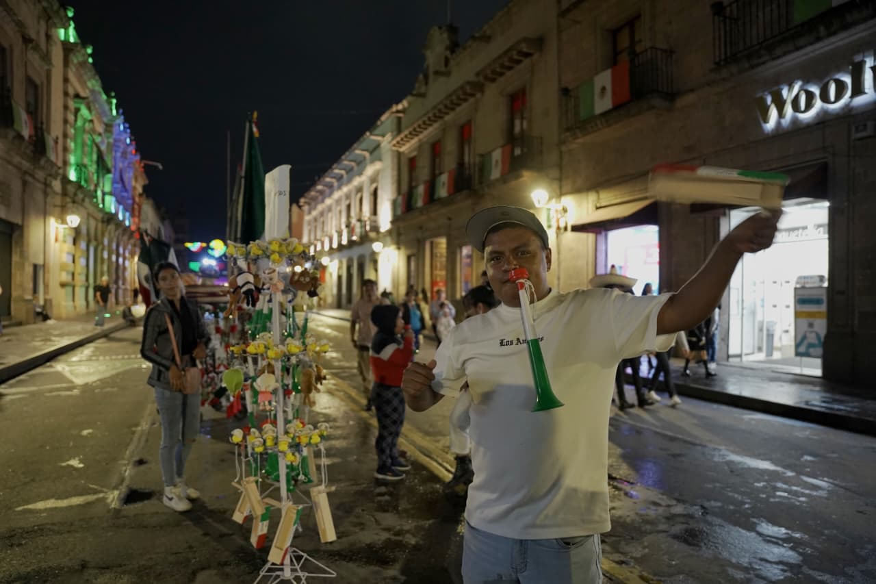 Pasadas las 8;30pm de la noche, los comerciantes, no se quedan atrás, impartiendo el ambiente con sus variedades de banderitas, adornos tricolores, recuerditos, etc., comparten color y vida mientras la verbena comienza a inundar poco a poco el festejo moreliano que dicta cada 15 de septiembre.