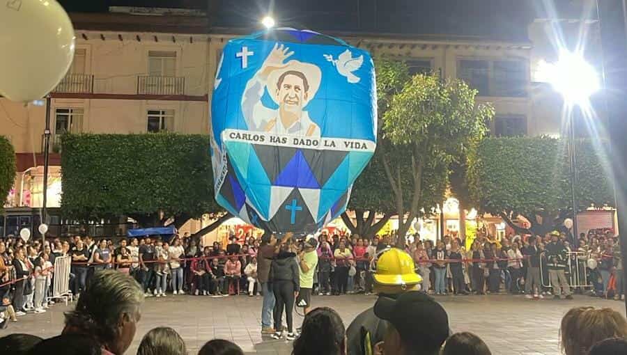 +En la plaza principal elevaron un enorme globo de cantoya con el rostro del munícipe asesinado
