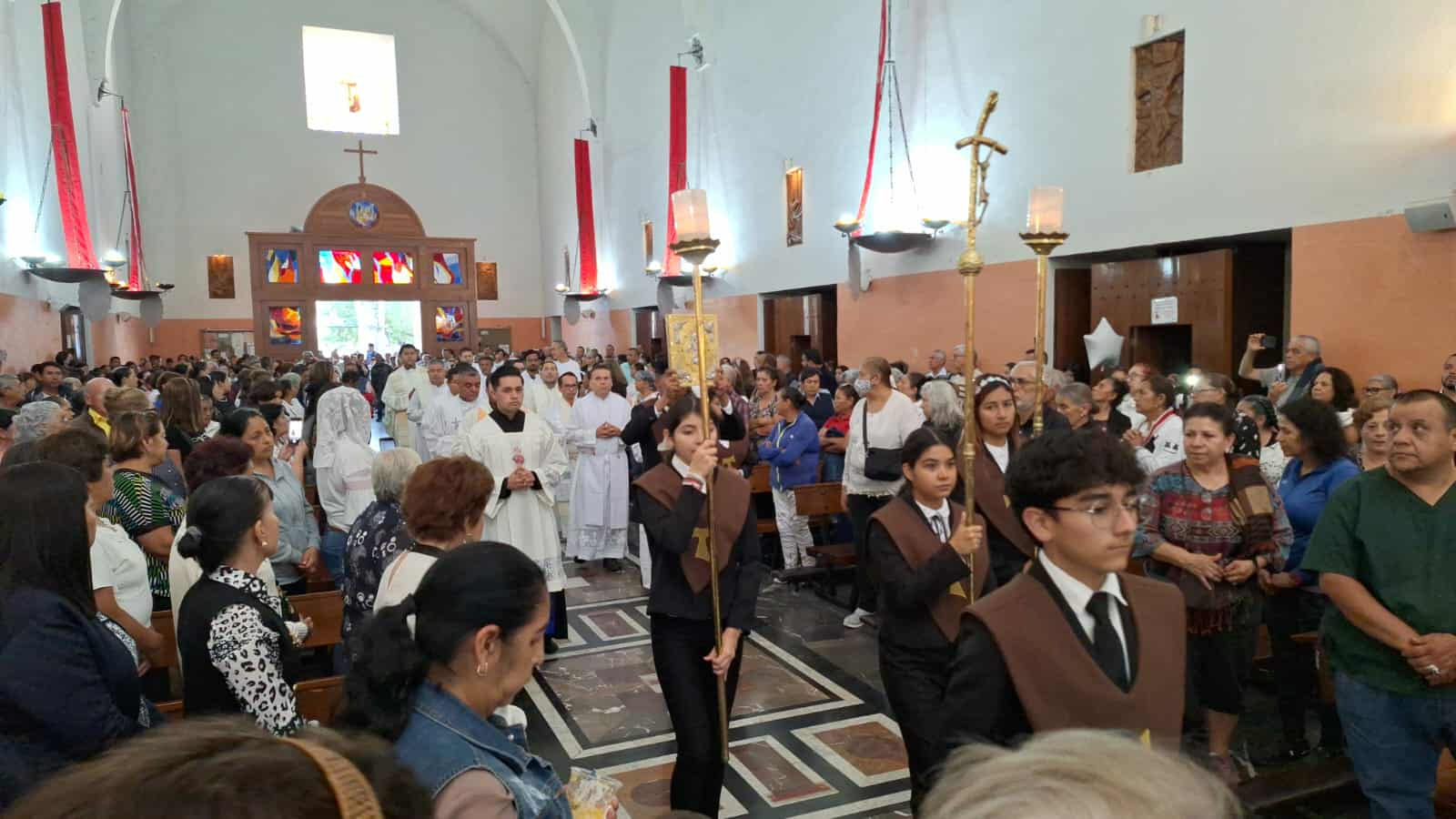 En el recinto religioso, la alcaldesa sustituta, Grecia Quiroz estuvo fuertemente custodiada por elementos federales y al término de la misa se retiró por el área de acceso de los sacerdotes y personas que laboran en el templo.