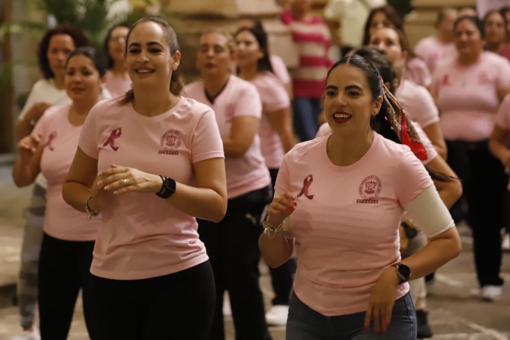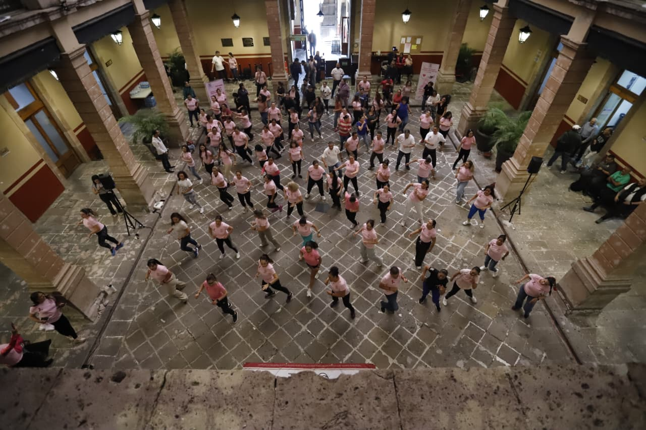 Como parte de las actividades programadas por el mes de la sensibilización sobre el cáncer de mama, las diputadas Giulianna Bugarini Torres, Presidenta de la Mesa Directiva, la legisladora Sandra Arreola Ruíz, acompañadas por Adriana Chávez Serna, Secretaría de Previsión Social, Seguridad e Higiene del STASPLE, siguieron los pasos marcados por los instructores Cielo Moreno y Oliver.