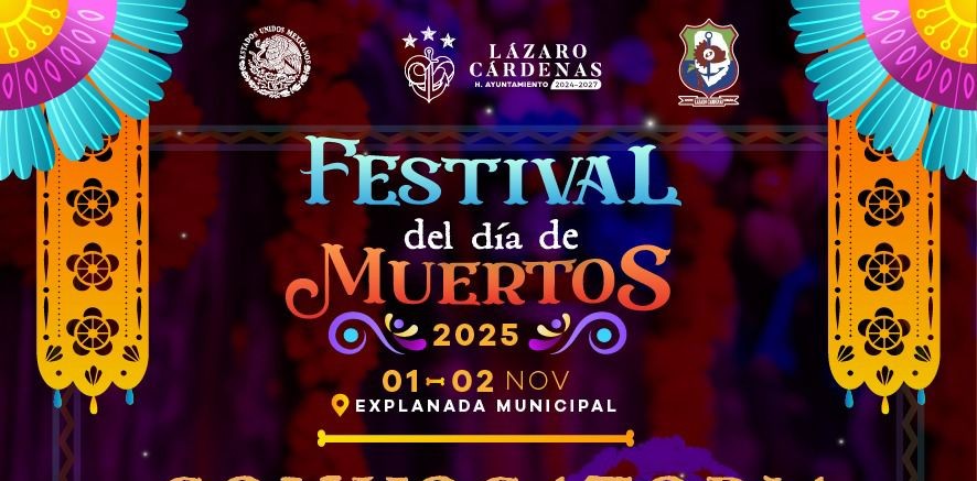 Lázaro Cárdenas, Michoacán, a 14 de octubre de 2025.- El Gobierno Municipal de Lázaro Cárdenas, a través de la Coordinación de Protocolo y Logística, invita a la ciudadanía a participar en el Desfile Nocturno del Día de Muertos, que se llevará a cabo el 2 de noviembre a las 6:00 de la tarde, partiendo desde Juegos Acapulco con destino a la Explanada Municipal.