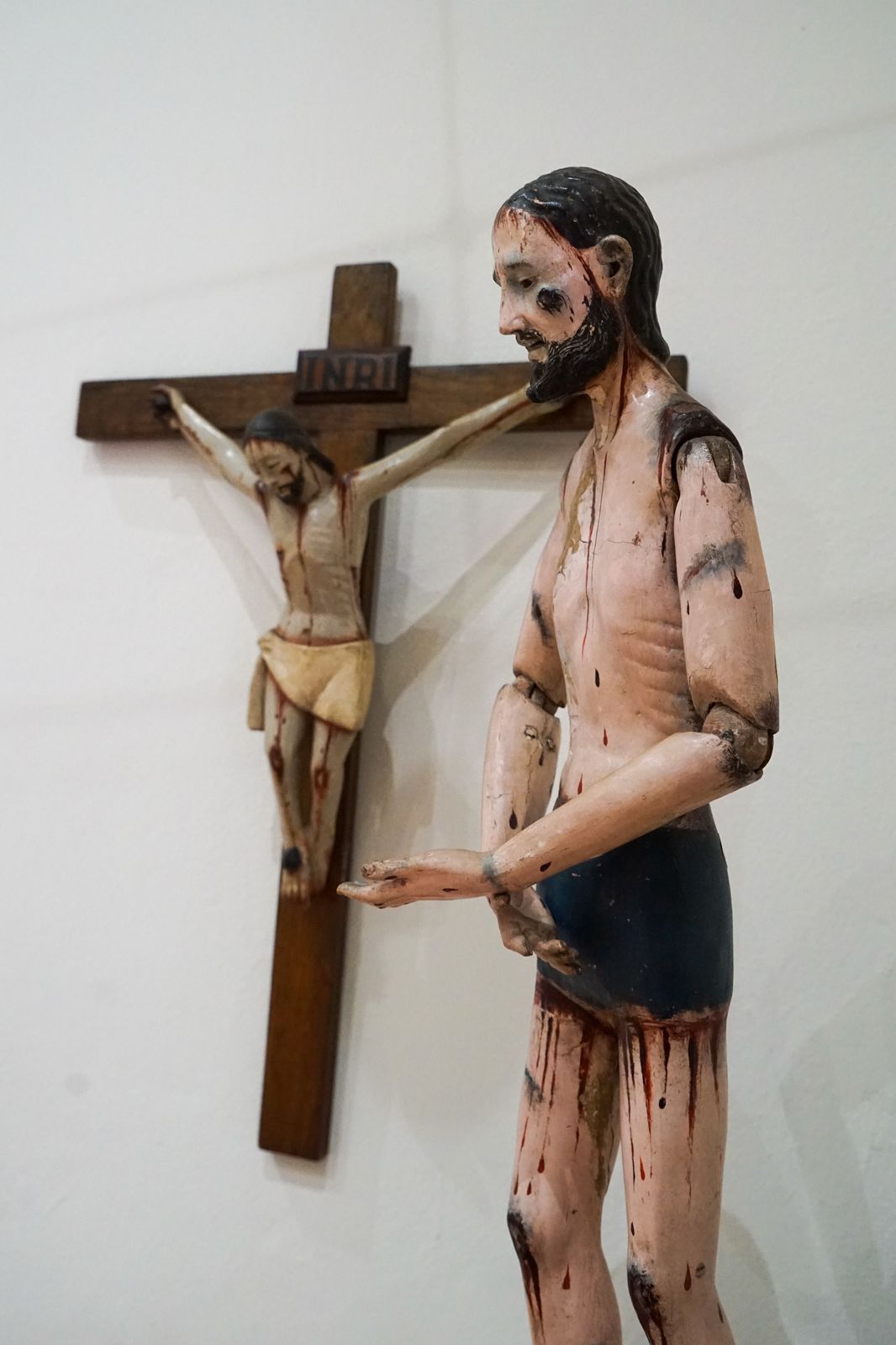 La pieza más antigua data del siglo XVI y entre las más llamativas hay Cristos de cuatro clavos, inusuales por tener los pies separados en vez de cruzados, así como Cristos con peluca, articulados sin cruz y uno más de marfil del siglo XVIII, proveniente de Filipinas.