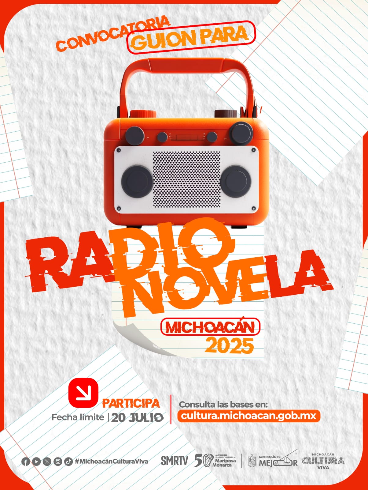 Morelia, Michoacán, 29 de junio de 2025.- La Secretaría de Cultura de Michoacán (Secum) recuerda a los interesados que la convocatoria para la creación de una radionovela original aún está abierta. El plazo para participar cierra el próximo 20 de julio a las 23:59 horas.