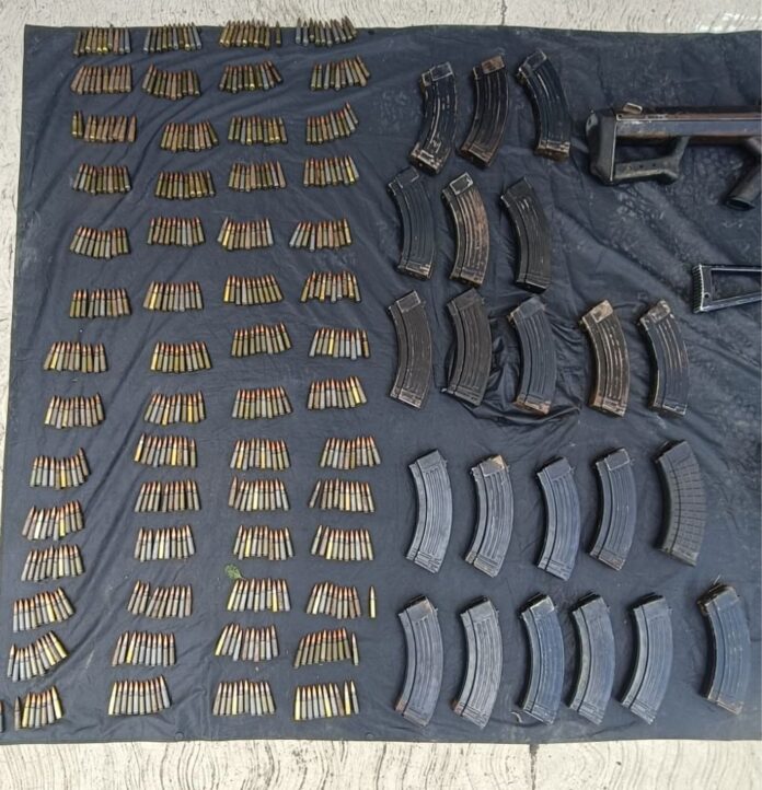 Dentro de la unidad, los agentes policiales y castrenses encontraron tres fusiles calibre 7.62X39 milímetros, el barret, con impacto antiblindaje, calibre .50, además de 576 cartuchos y 25 cargadores, así como un chaleco táctico con una leyenda alusiva a una célula delincuencial.