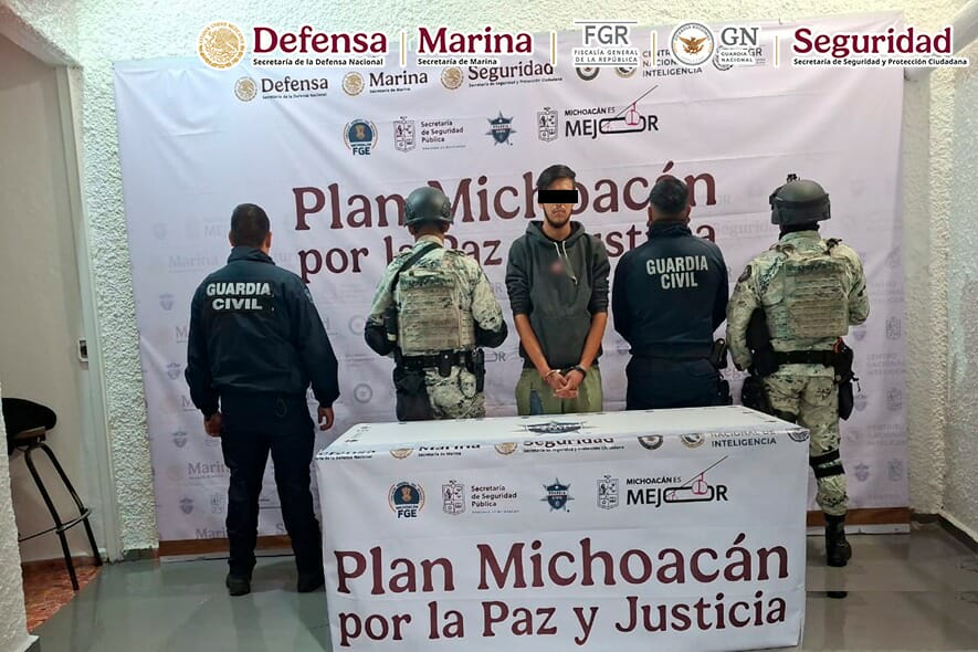 Morelia, Mich.- 27 de noviembre de 2025.- Como parte del despliegue del “Plan Michoacán por la Paz y la Justicia”, elementos de la Secretaría de la Defensa Nacional (Defensa), Guardia Nacional (GN), en coordinación con la Secretaría de Marina (Semar), Fiscalía General de la República (FGR), Secretaría de Seguridad y Protección Ciudadana (SSPC), junto con la Secretaría de Seguridad Pública (SSP) y Fiscalía General del Estado (FGE), detuvieron durante las últimas horas a siete personas, además aseguraron siete vehículos y siete artefactos explosivos improvisados.