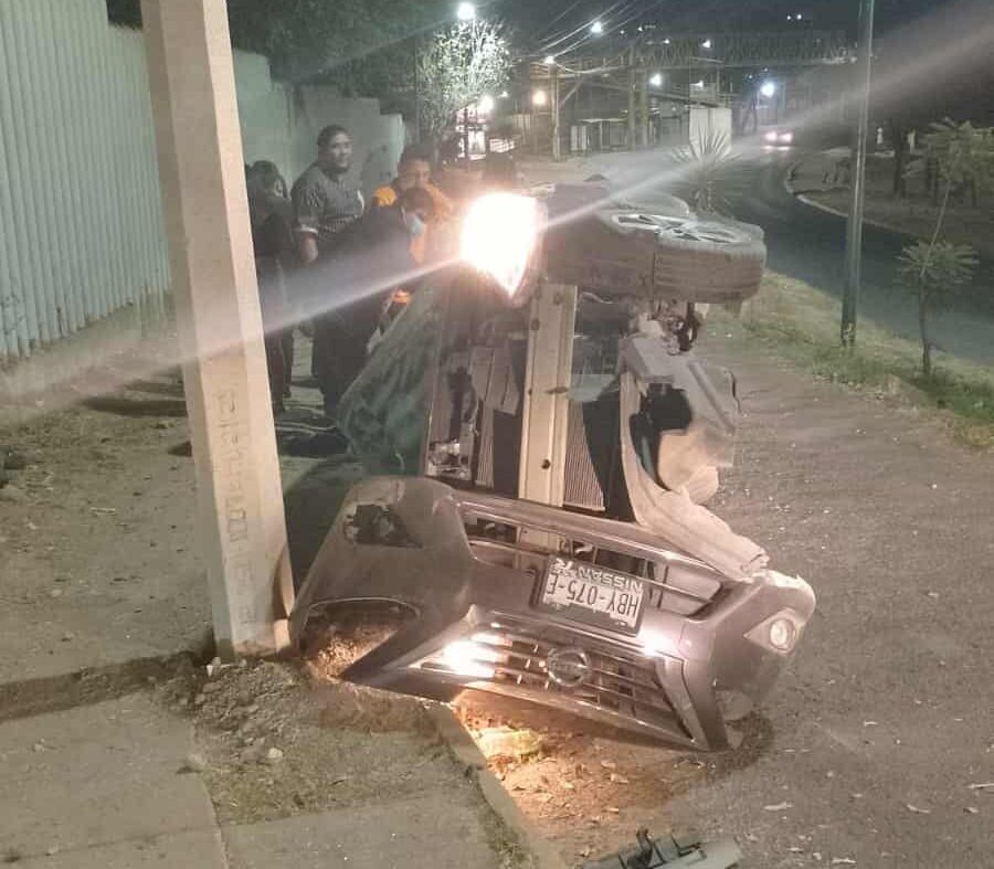 Se trató de un automóvil que presuntamente circulaba a una velocidad mayor a la permitida; salió intempestivamente de la carpeta asfáltica y terminó volcado y destrozado en una calle paralela.