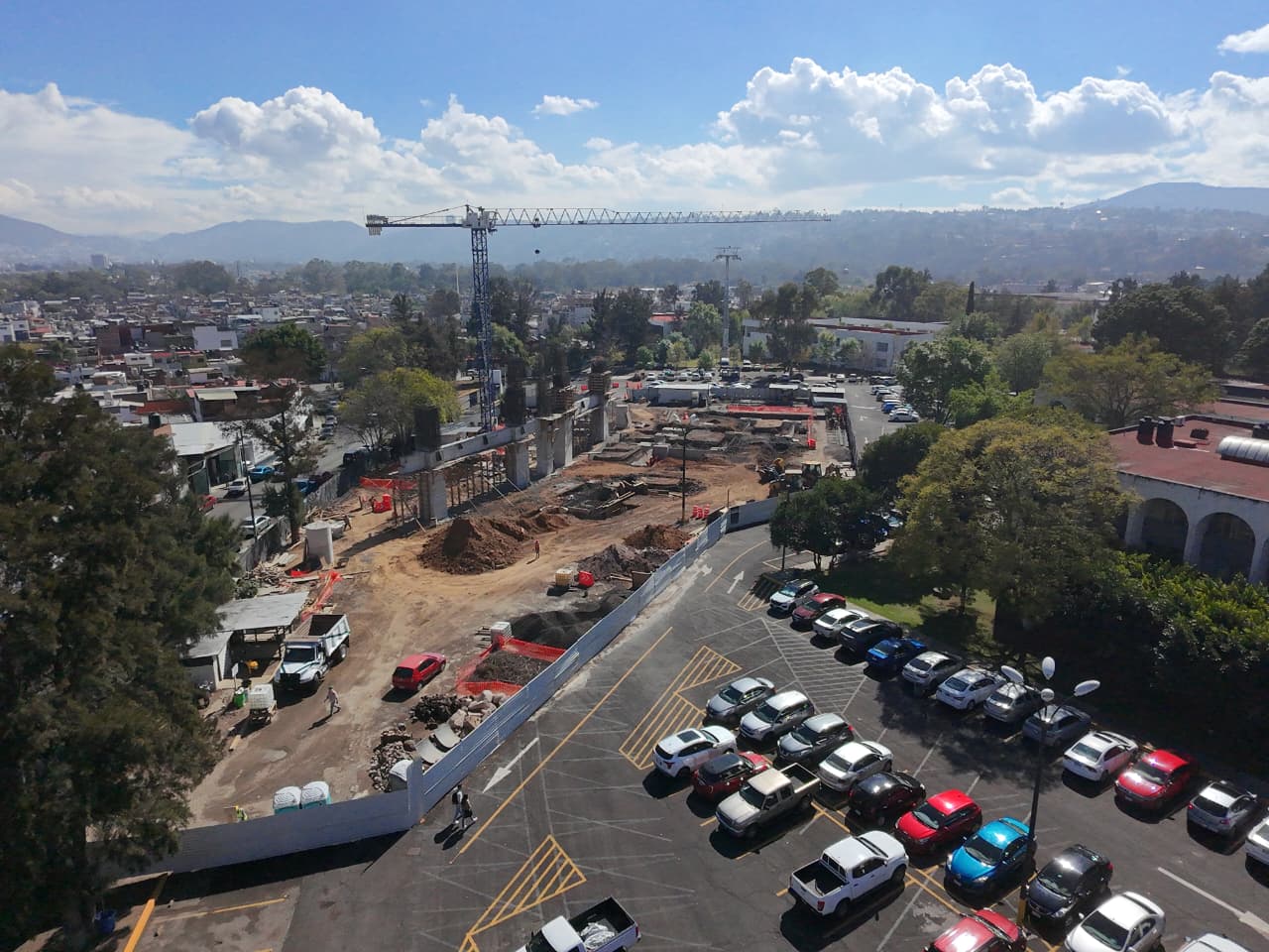 Morelia, Mich. | Agencia ACG.- Así avanza la construcción de una de las últimas estaciones del teleférico de Morelia, ubicada al interior de Ciudad Universitaria, donde se observa el espacio que ocupa dentro del estacionamiento y el progreso que tiene esta obra de movilidad urbana.