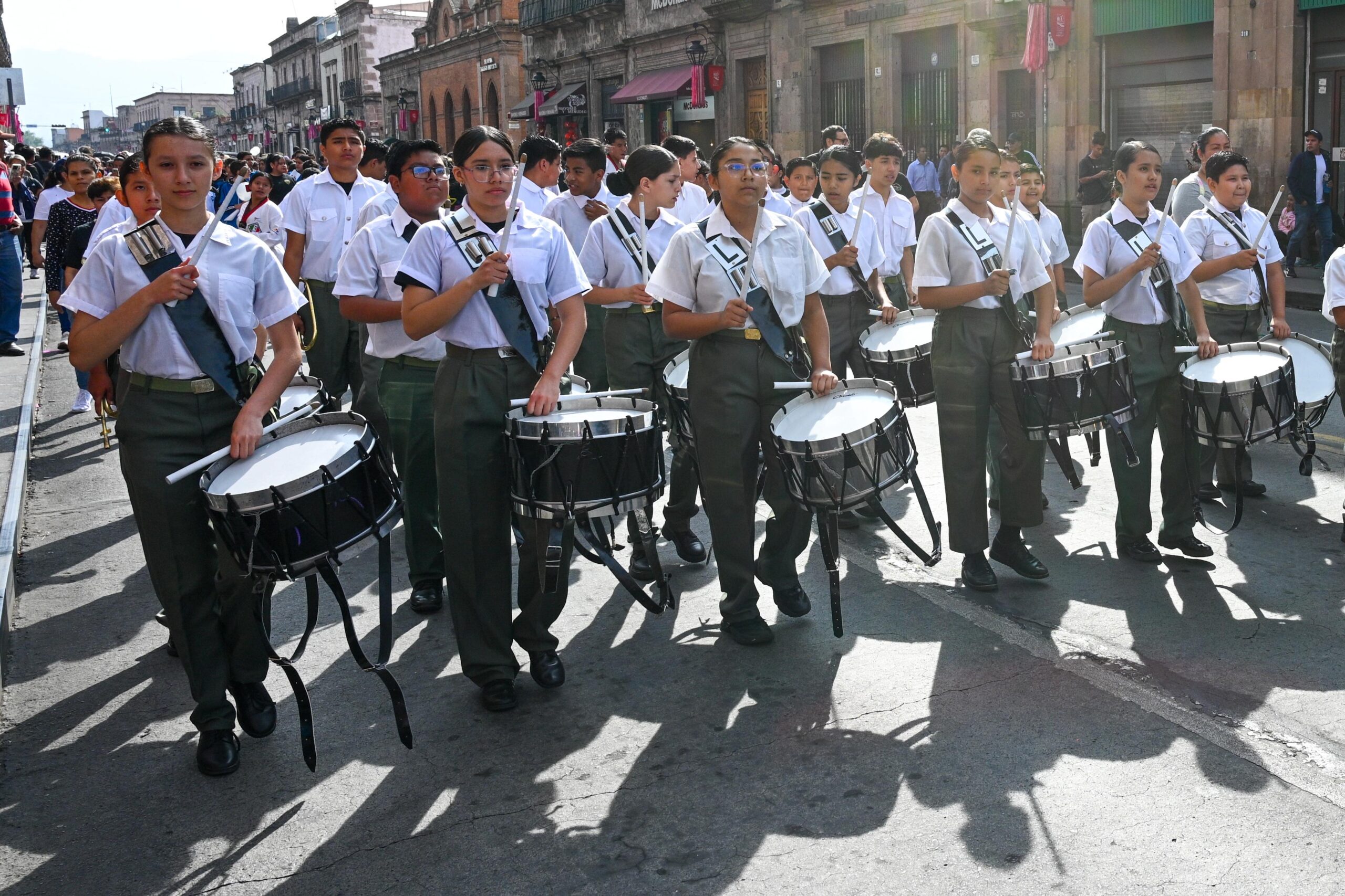 Morelia, Michoacán.- Por la avenida Madero, desde la fuente de Las Tarascas hasta la Catedral de Morelia, estudiantes, maestros y personal administrativo de la Escuela Secundaria Federal No. 4 J. Guadalupe Salto participaron en un colorido desfile con motivo del 50 aniversario de la institución. 🎉