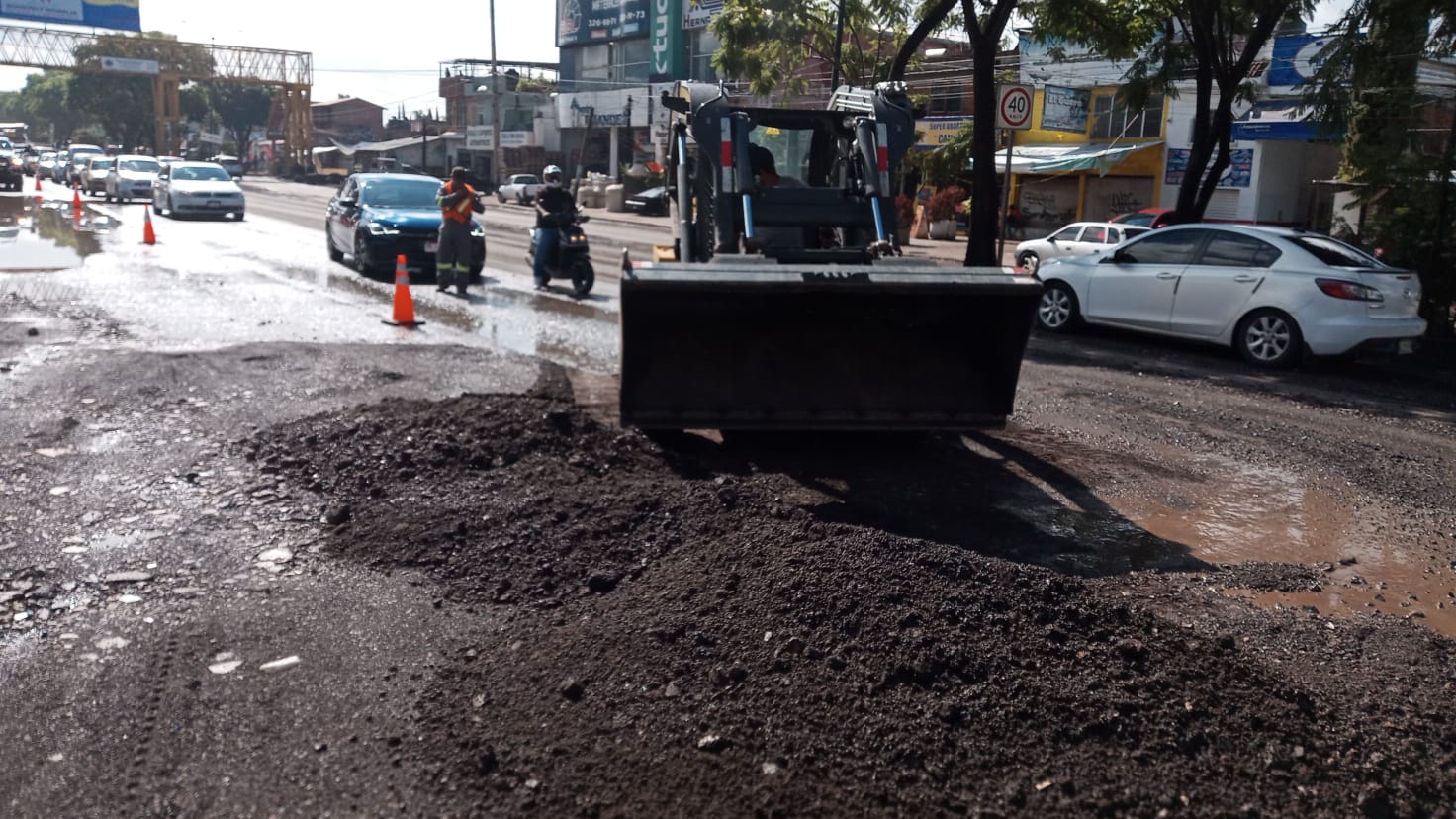 Con apoyo de maquinaria pesada, los trabajadores municipales liberan la vialidad para permitir el paso seguro de los automovilistas que circulan por esta zona.