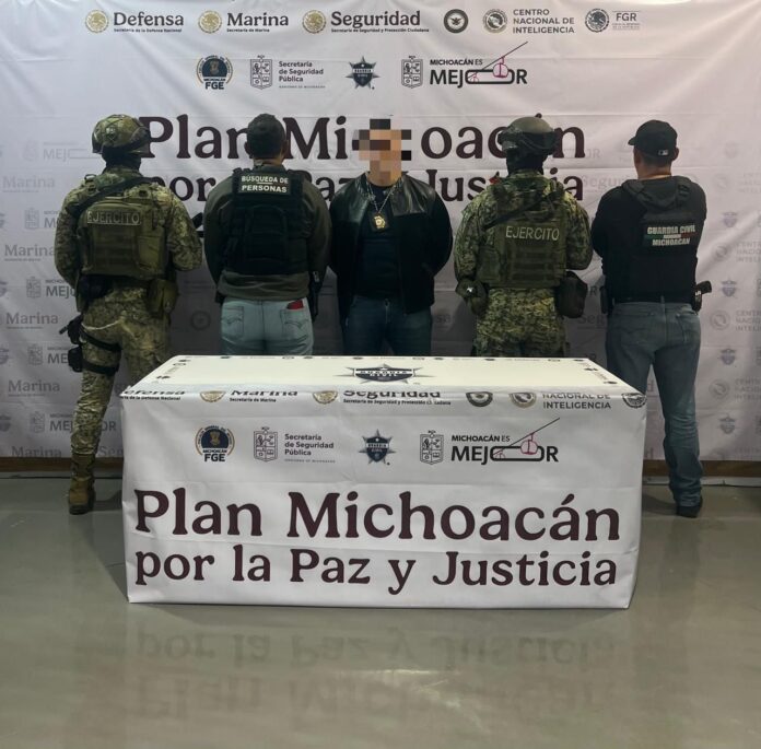 Morelia, Michoacán, 28 de noviembre de 2025.- Agentes de las secretarías de Seguridad Pública (SSP) y de la Defensa Nacional (Defensa) detuvieron en la ciudad de Morelia a un presunto asaltante de tiendas OXXO, como resultado de las acciones del Plan Paricutín.