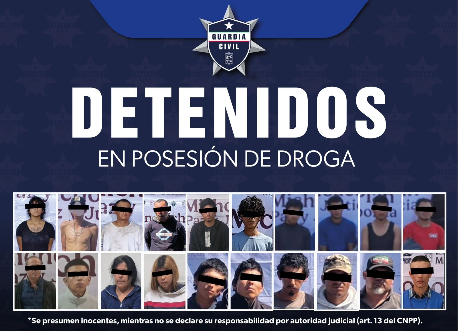 Morelia, Michoacán, 19 de febrero de 2026.- Como resultado de los operativos reforzados en Michoacán, la Secretaría de Seguridad Pública (SSP) detuvo a 20 personas en posesión de droga durante la última semana. Las capturas se realizaron en acciones estratégicas desplegadas en cinco municipios del estado.