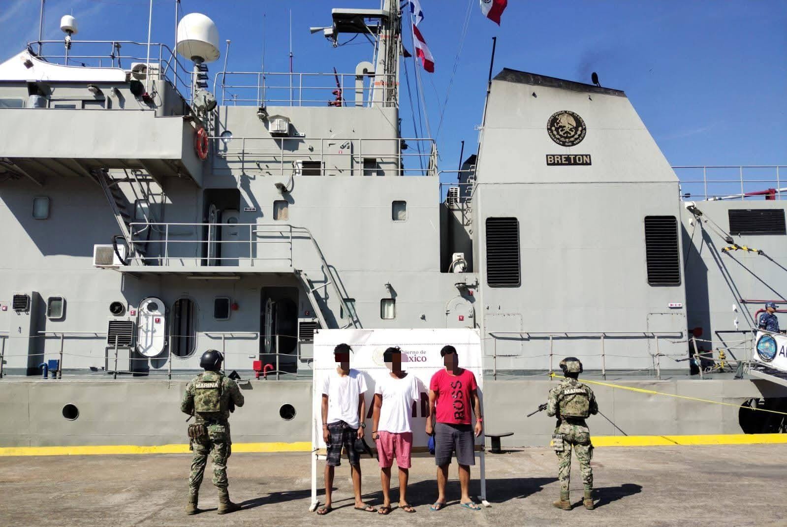 Lázaro Cárdenas, Mich.- 27 de enero de 2026- La Secretaría de Marina, a través de la Armada de México, informó este martes, que en días pasados, en el marco de las acciones permanentes en Michoacán, personal naval en coordinación con la Fiscalía General de la República (FGR), logró la detención de tres presuntos transgresores de la ley que transportaban a bordo de una embarcación menor con dos motores fuera de borda, más de 1,043 litros de combustible contenida en 23 bidones.