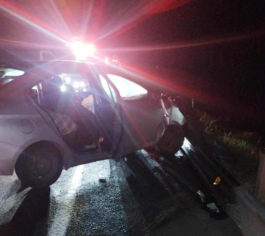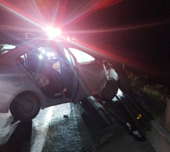 El primer suceso fue a la altura del kilómetro 203+200 del tramo Uruapan-Lázaro Cárdenas, donde un automóvil Chevrolet Aveo, modelo 2020, salió de control y terminó impactándose contra la barrera metálica de contención.