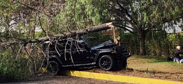 El segundo incidente sucedió en las cercanías de la Glorieta Juan Pablo II, en la zona de Altozano. En el sitio se observó que una camioneta Jeep, color negro, se salió de control, trepó al camellón central y derribó un árbol; el conductor resultó levemente lesionado.