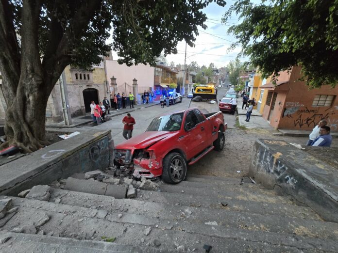 La camioneta continuó avanzando poder detenerse, así que para evitar un percance mayor, el conductor ingresó a la calle Amado Nervo, donde se estrelló contra los escalones de concreto de una jardinera ubicada a la orilla de las vías férreas.