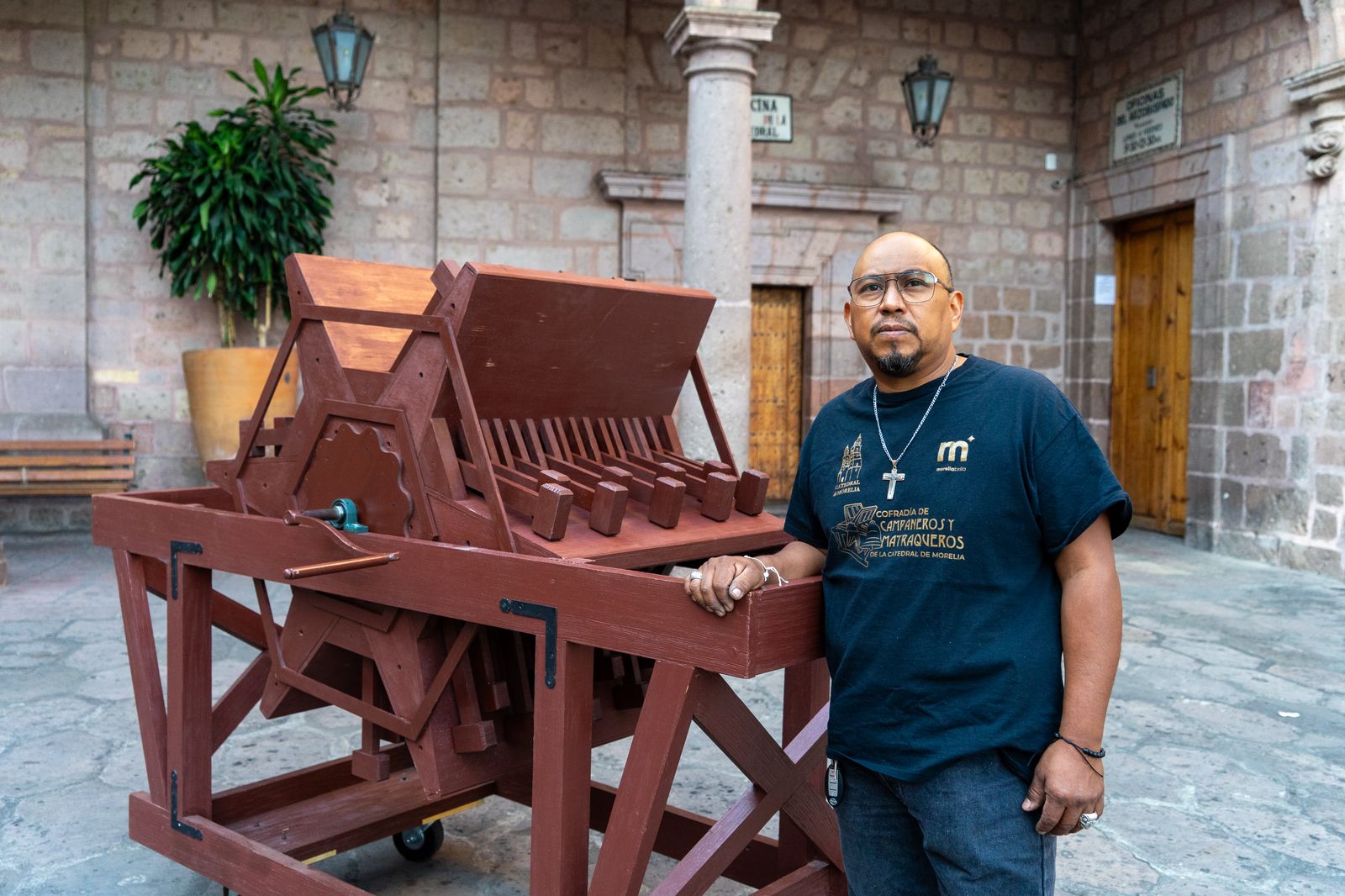 Morelia, Mich., a 17 de abril.– Entre el silencio de las campanas y el retumbar seco de la madera, un grupo de hombres mantiene viva una de las tradiciones más solemnes de la Semana Santa en Morelia. Uno de ellos es Ulices Alejandro García Martínez, carpintero de oficio y campanero por vocación.