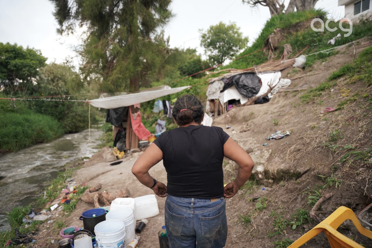 «Con eso hacemos todo: comer, lavar, bañarnos. Hasta ahorita no nos hemos enfermado, gracias a Dios», explica, a pesar de vivir junto a un río de aguas negras, las enfermedades no han tocado su puerta.