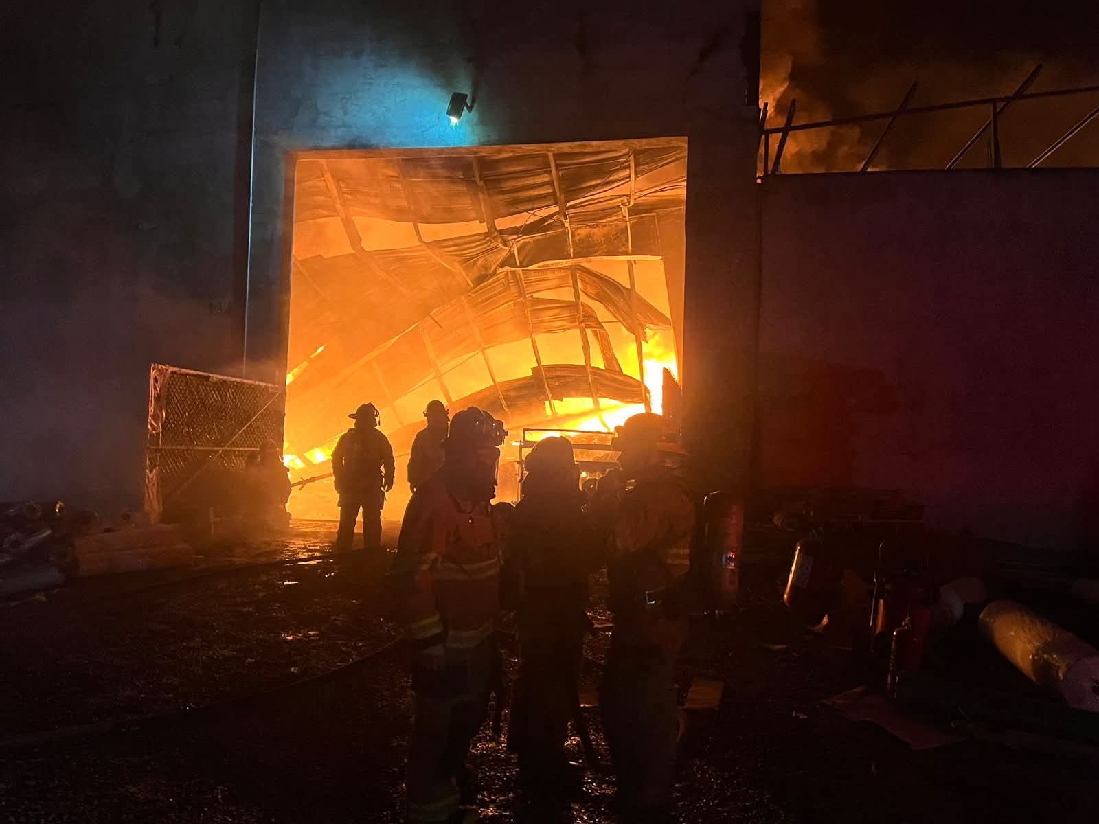 Chavinda, Mich.- 26 de diciembre de 2025.- La noche del pasado jueves se reportó un incendio de grandes magnitudes en una fábrica de plásticos ubicada en la calle Francisco I., Madero de la cabecera municipal de Chavinda.