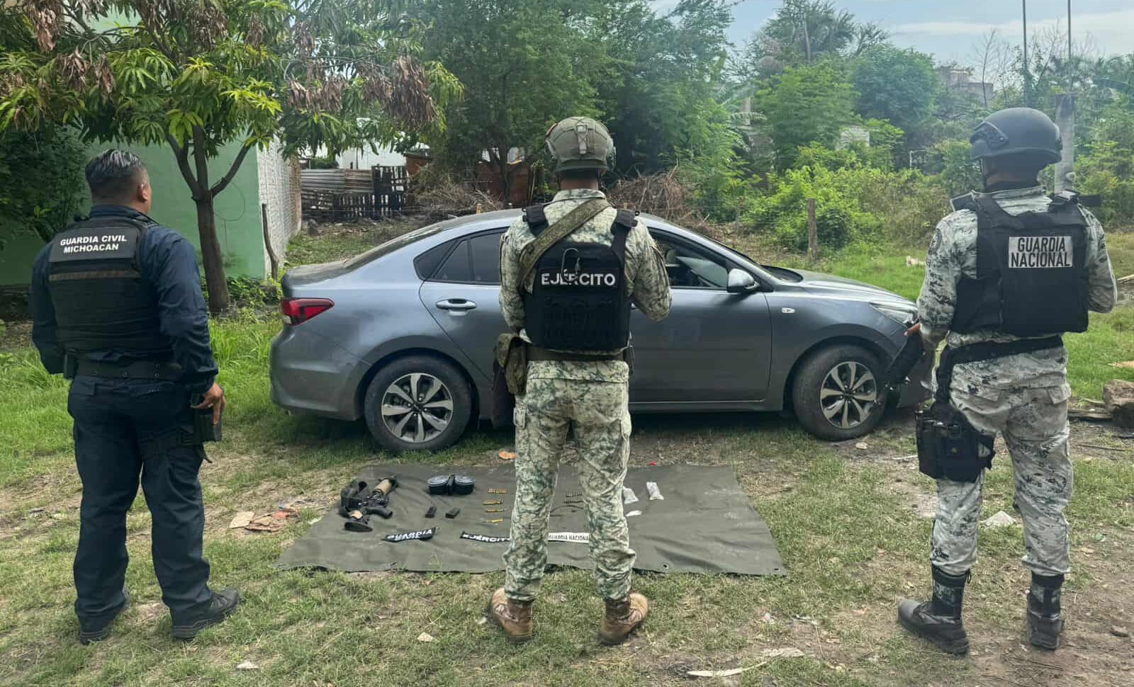 Buenavista, Mich.- 30 de agosto del 2025.- En seguimiento a la Operación Apatzingán, los agentes de las secretarías de Seguridad Pública (SSP), y de la Defensa Nacional (Defensa), aseguraron un vehículo con reporte de robo, un arma de fuego, municiones, droga y desactivaron un artefacto explosivo improvisado.