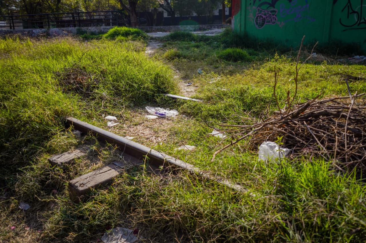 Uno de los puntos más afectados es el área donde se encuentran las vías, espacio que actualmente luce cubierto por hierba crecida y sin mantenimiento. Este tramo es utilizado principalmente como estacionamiento improvisado por personas que acuden a trabajar a las fábricas cercanas, ante la falta de espacios adecuados.