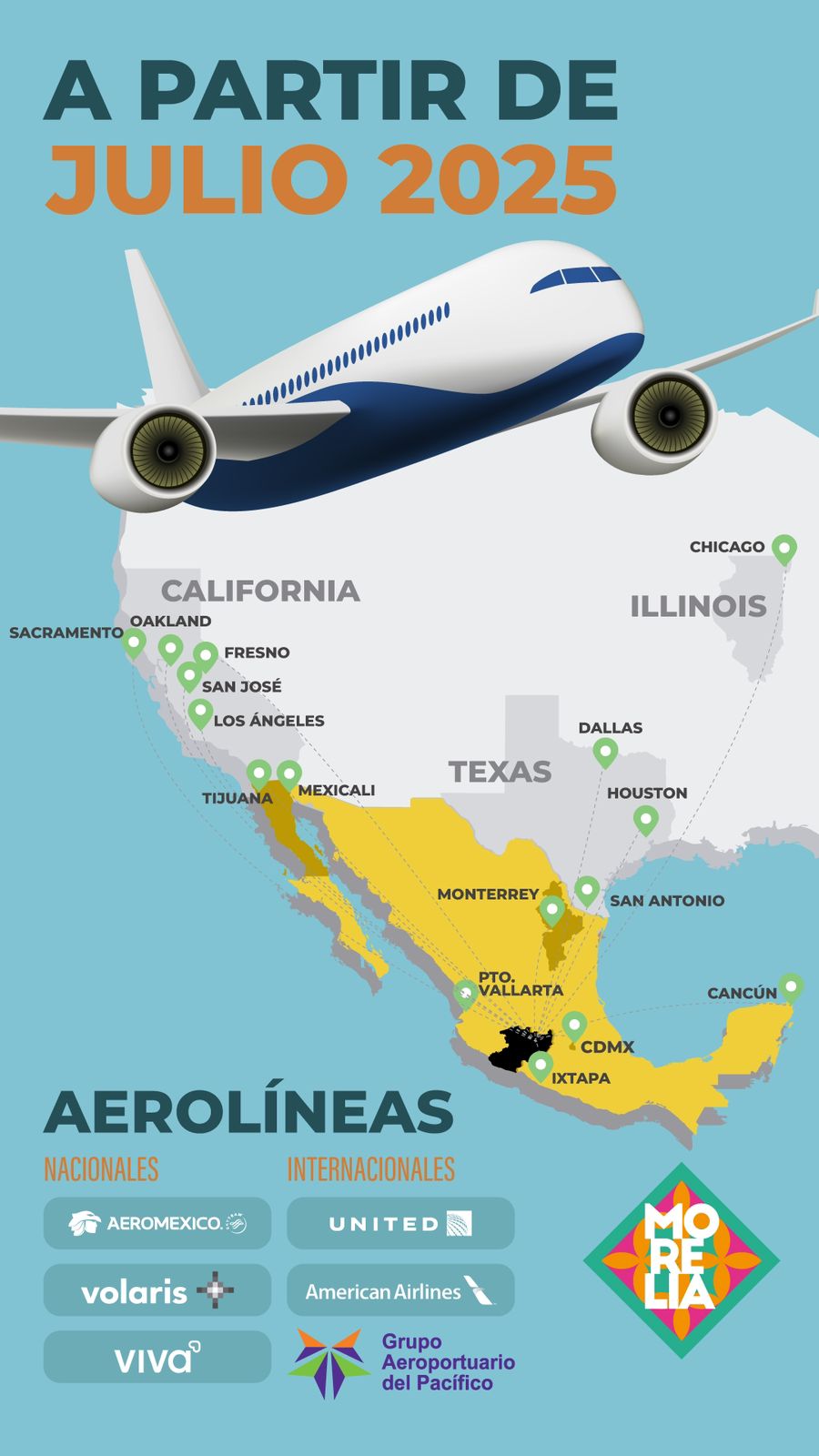 Dicho proyecto no sería posible sin los buenos resultados registrados en la capital: Durante el primer semestre de este 2025, el Aeropuerto internacional de Morelia se ha mantenido en el noveno lugar de México en llegada de pasajeros internacionales, con más de 400 mil pasajeros.