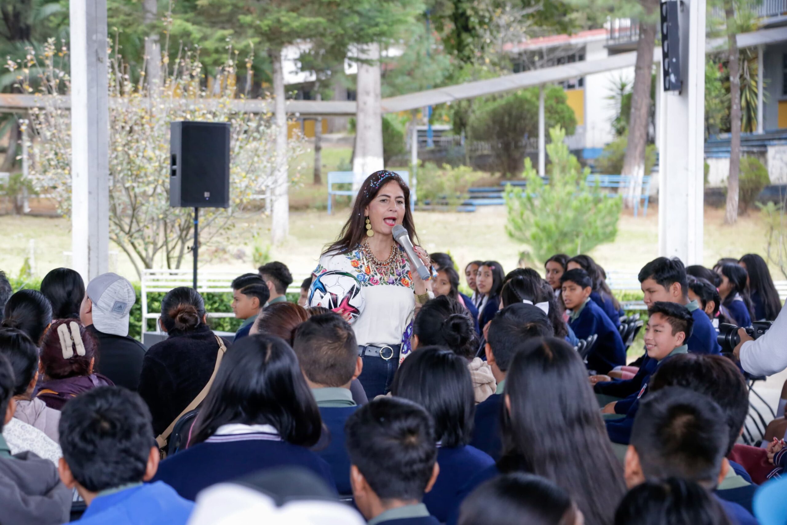 Paracho, Michoacán, 9 de diciembre de 2025.- La cercanía, el diálogo con maestras, maestros y la escucha de las comunidades son clave para avanzar en la reconstrucción del tejido social y avanzar hacia una cultura de la paz, señaló la secretaria de Educación, Gabriela Molina, al realizar una gira de trabajo en el municipio de Paracho, donde el programa Jalo a Estudiar, Jalo por la Paz, llega a 2 mil 170 estudiantes.