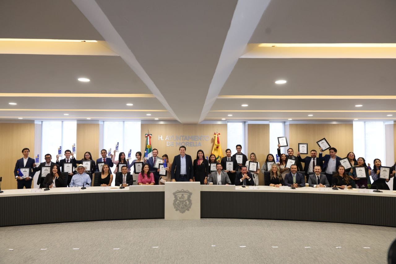 Morelia, Michoacán; 30 de mayo de 2025.-Con la finalidad de impulsar y apoyar a las juventudes morelianas, el Presidente Municipal, Alfonso Martínez Alcázar realizó la entrega de la Condecoración al Mérito Juvenil 2025 en Sesión Solemne de Cabildo, en donde aseguró que para su Gobierno las y los jóvenes no son una dependencia más, se trabaja con ellas y ellos.