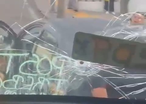 Morelia, Mich.- Lunes 08 de septiembre de 2025.- A través de redes sociales se difundió un video en el que se observa a al menos tres sujetos enfurecidos vandalizando los cristales de un camión de pasajeros y retando al chofer a descender de la unidad. La referida situación se registró este lunes en la ciudad de Morelia, comentaron fuentes allegadas al tema.